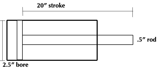 1) A double acting cylinder with a 2.5" bore and a .5" rod extends through a 20" stroke while producing a 300 lb force, and retracts through the same stroke with a 500 lb force. If the extension time is 4 seconds and the retraction time is 5 seconds how much SCFM is required to power the cylinder?