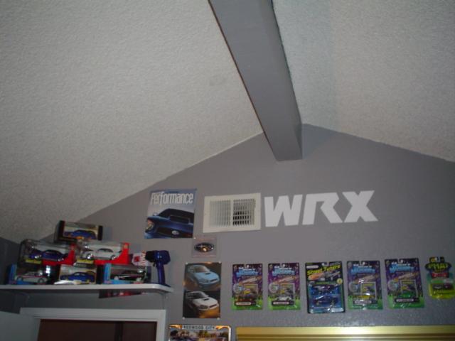 Heres my wall dedicated to wrx's, im still working on painting "Impreza" under my WRX logo. i also plan on trying to paint a wrx on the wall next to this one . . . hopefully it works out the way i want . . .
