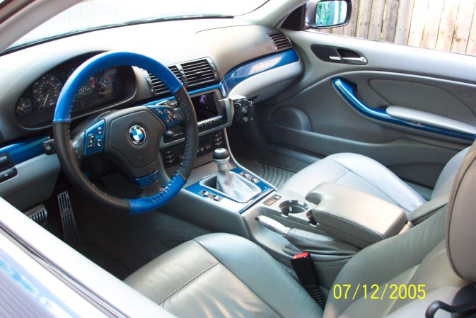 Car is: Topaz Blue with Grey leather (not leatherette) and in excellent condition, I regularly attend BMW meets in NY and can have some fellow E46fanatics vouch for the condition of my car.