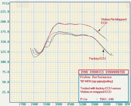 FWIW, on our dyno, most stock WRXs dyno in at 158-162 wheel hp. Most Stage Zero cars dyno between 192-200 wheel hp. This car, in particular, made 194 hp with the Unichip and MBC. So an additional ~10-13 wheel hp is a nice gain. Also interesting is that the car runs richer a/f ratios with more positive knock correction values. And no, there is no CE light