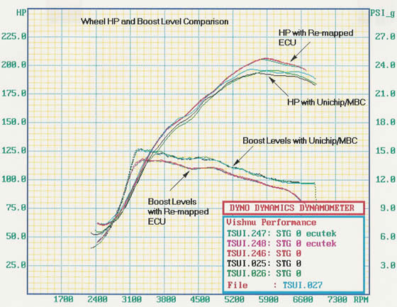 I'd be curious to see the ECUTEC vs the Unichip/MBC on a graph too. Just to see the differences accross the band not just at peak. It's also nice to see the ECUTEC gets rid of the little blip at 3100 or so. BTW I'm guessing this test shows the factory ECU after a fresh reset?-James
