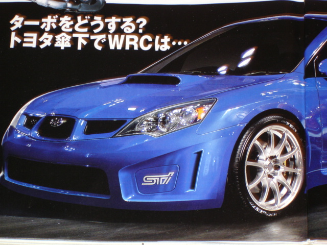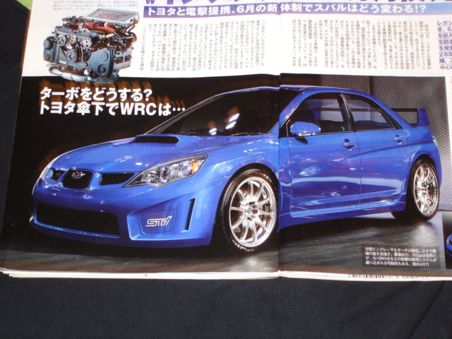 In the never ending evolution of the WRX, the model again goes under the knife. Got these pictures from the July edition of "Best Car". Not sure of the legality of it all, but I took pictures of the pictures to share with you all how the latest rendition of the WRX will be (I think) as I don't read Japanese. The article does state that the 2.0 motor makes 300ps and 45 kgm of torque. Personally, it's OK, but it looks too much like the outgoing Toyota Celica...I would rock that wing though.