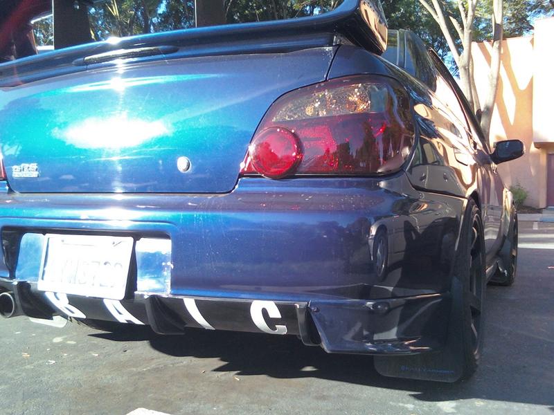 If you can pick up another STi diffuser, you could try to mount them together to get a diffuser that spans the whole rear end. I've seen a picture of someone doing that... You could even go one step further and cut them up to get the fins to line up.