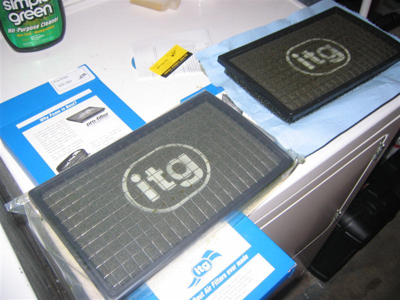 3rd Picture: new vs used ITG Panel Filter. Ignore the bottle of simple green, I didn't use that on the filters, haha.