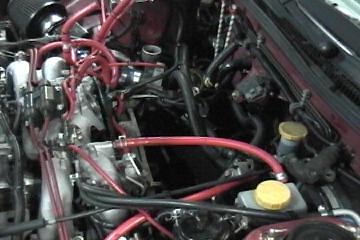 Low compression DOHC EJ2.5 RS block with stock headgaskets and heads, Unorthodox pulleys, Unorthodox light flywheel and clutch, Custom bored out T-Body, Nissan side feed 370cc injectors from SR20det, ludespeed fuel mod, stillen adjustable fuel pressure regulator, walbro 255 fuel pump, Msd DIS 2 ignition, Ludespeed stage 3 turbo system with upgraded T3/T4, WrX intercooler, Apexi S-AFC, Apexi ITC, Apexi turbo timer, Apexi cat back N1, Auto Meter EGT, Boost, Volts, Air fuel, Vac gauges,