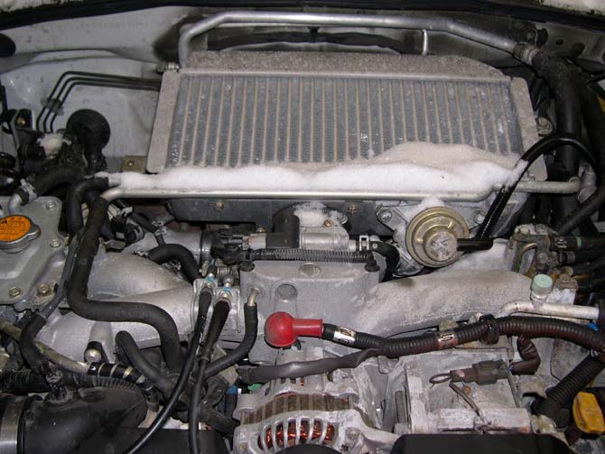 This is an older pic. I've changed the oil cap to an STI one and I also changed the strut bar.