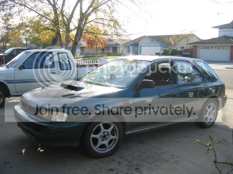 RHD conversion, RHD guage cluster, RHD floor mats(5 piece set), EJ25 engine transmission swap, Clear front corner lamps, 97' Driver side headlamp (soon to be passenger side once RHD conversion is complete), 98 RS front grille, V4 front bumper and lightweight bumper beam, Rear spats, GC8 side skirts, GDB STi suspension( shocks and springs), '98 RS Gold rims.