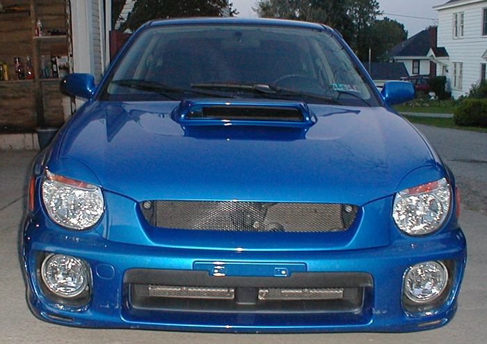 I got the replica LIberal Grille from Gruppe-S and a set of Tein S-Tech springs to even out the ride. I also got the MRT Rally 04 STI for an 03 REX hood scoop with a set of Jun eyelids (I got the eyelids on ebay for 25 bucks and they are real not replica), I also put a bigger spoiler on it, I will update the pics when I get my C-West body kit on it, I just have to paint it and install it (prolly wont do that till early spring) and got a set of 12" Kicker solobarics powerd by a Kicker 1200.1 mono amp and a Kicker 150.2 for the fronts. When I did put the front lip (to ensure it fit)on I backed into my garage and it ripped the front lip off, so I am gonna have to even out my driveway so I can put my car in the garage.