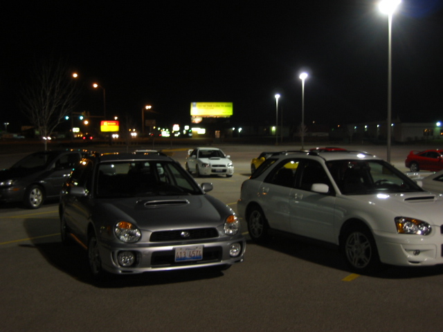 We had a meet last night in Peoria, IL more people showed than what I thought. We had seven subarus (1 svx, 3 wrx's, and 2 sti's) there was a full s13 silvia converted 240sx, a s2000, a fully built turboed SI, plus many more I cant think of now. Here are some of the pictures: