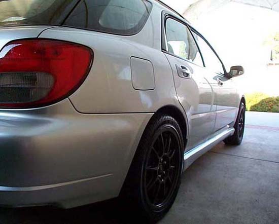 here's an update on my car, pretty much finished the exterior off w/some rims, painted side skirts, and included a prodrive exhaust