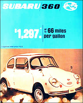 One of the first cars FHI built. 2 cyl, 2 stroke engine with 360cc of displacement. Rear engine and I believe RWD. First built in the late 50's in Japan, and first brought over to the US in the late 60's.